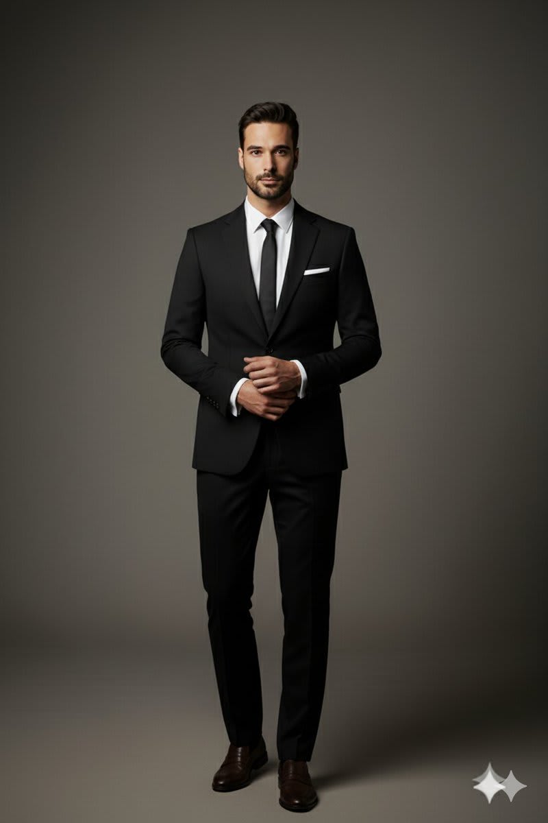 "clothing": "A properly tailored outfit — elegant and well-fitted, enhancing a sophisticated look"