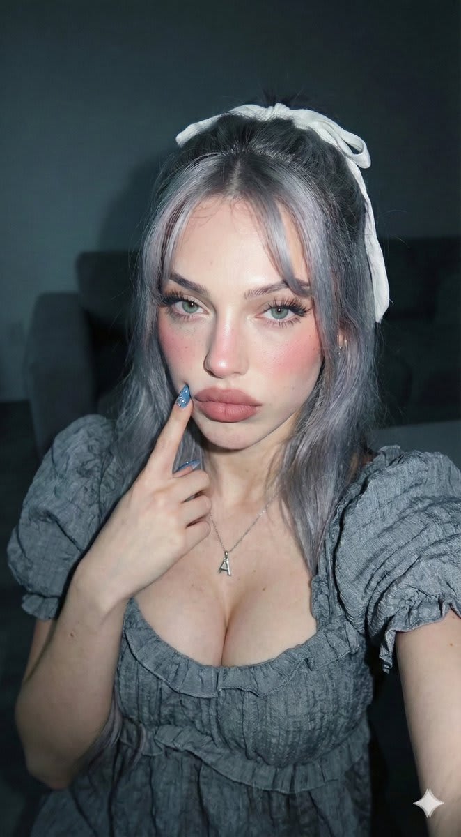 "{"generation_task":{"title":"Cinematic Flash Selfie - Film Noir Style","version":"2.0","strict_constraints":{"face_preservation":"Face must remain 100% unaltered from reference.","lighting_type":"Direct on-camera flash only.","view_angle":"High-angle (approx. 30 degrees)."},"prompt_components":{"subject":{"demographics":"Beautiful woman","hair":{"style":"Long, wavy, tied half-up","accessory":"White cloth ribbon knotted at top of head","details":"Thin bangs framing the face"},"facial_features":{"skin":"Shiny texture (due to flash), small freckles on nose and upper cheeks","makeup":{"style":"Doll-like","lips":"Matte, blurred, muted rose tone","cheeks":"Soft pink blush on cheeks and nose","eyes":"Long curled eyelashes, thin eyeliner with subtle wing"}},"wardrobe":{"clothing":"Textured gray dress, puff sleeves, ruffle details","jewelry":"Simple necklace with 'A' pendant"},"hands":{"pose":"Index finger touching cheek","nails":"Almond-shaped, blue base, small soft-sparkle crystals"},"expression":{"type":"Pouting, cute, dreamy, slightly cheerful","vibe":"Charming with cinematic feel"}},"environment":{"location":"Minimalist gray living room","lighting_condition":"Dimly lit room","background_visibility":"Dark, falling into shadow behind the subject"},"technical_specs":{"camera_type":"Digital camera simulating 35mm analog film","lighting_setup":"Strong direct camera flash (harsh light)","contrast":"High contrast (Chiaroscuro), bright face vs. dark background","angle":"High-angle selfie, 30 degrees elevation","color_grading":"Cool tones, muted colors, soft textures"},"artistic_style":{"genre":"Film noir elegance mixed with modern casualness","texture_quality":"Ultra-realistic, 8k, detailed skin pores, hair strands, and fabric weave","atmosphere":"Cold light reflection, modern warmth"}},"compiled_prompts":{"stable_diffusion_format":"high angle selfie, 30 degree angle, beautiful woman, long wavy hair half-up with white ribbon knot, thin bangs, doll-like makeup, matte rose lips, soft blush, freckles, textured gray dress puff sleeves, 'A' pendant, blue almond nails with crystals, pouting expression finger on cheek, strong direct camera flash, dark minimalist gray living room, film noir aesthetic, cool tones, shiny skin texture, high contrast, ultra-realistic, 8k, highly detailed --no altered face, warm lighting, vector, painting","midjourney_format":"/imagine prompt: extreme close-up high-angle selfie of a woman with white ribbon in wavy hair :: textured gray dress with puff sleeves :: doll-like makeup, matte rose lips, blue nails with crystals :: strong direct flash photography, dim room, film noir elegance, cool tones, shiny skin texture, sharp contrast :: shot on 35mm analog, photorealistic, 8k --ar 4:5 --stylize 250 --v 6.0"}}}"