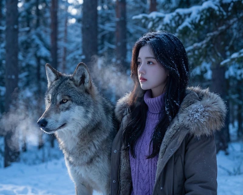 Back to Library0 viewsFrosty Wolf & WomanTAGSPortraitLandscape/NatureMAIN PROMPT0COPY"A portrait of a woman and a wolf standing side by side in a snowy forest. They are looking in the same direction. The lighting is cool and blue. Breath vapor is visible."Related PromptsSwiss Alps Lodge PortraitCopy00Alpine Cable Car ExitCopy00Solitary Figure on Stormy CliffCopy00Cinematic Raja Ampat SkydivingCopy00Frosty Alpine DJ SetCopy00City Puddle ReflectionsCopy00Epic Dark Fantasy War MapCopy00LOTR Miniature DioramaCopy00