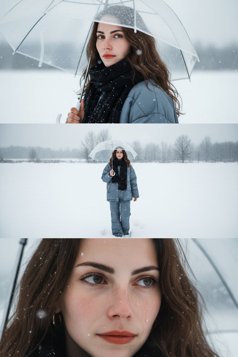 "Create a vertical frame (4K quality) - divided into three equally sized horizontal images placed together.