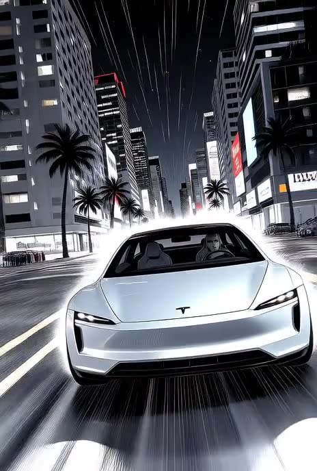 "A comics page in raw pencil sketch style, inspired by Frank Miller concept art. No inking, no colors. Cinematic extreme angles. A Tesla Cybertruck racing full speed through Miami city streets at night, angular metallic body emphasized with bold pencil strokes and heavy shadows. Behind it, a normal sedan struggles to keep up, drawn smaller and fading in motion blur. Rough pencil lines suggest skyscrapers, palm trees, and neon billboards of Miami, all sketched with gritty, unfinished energy. The Cybertruck dominates the frame, powerful and unstoppable, while the chasing car looks weak and distant. Pure comic-style pencil concept art."