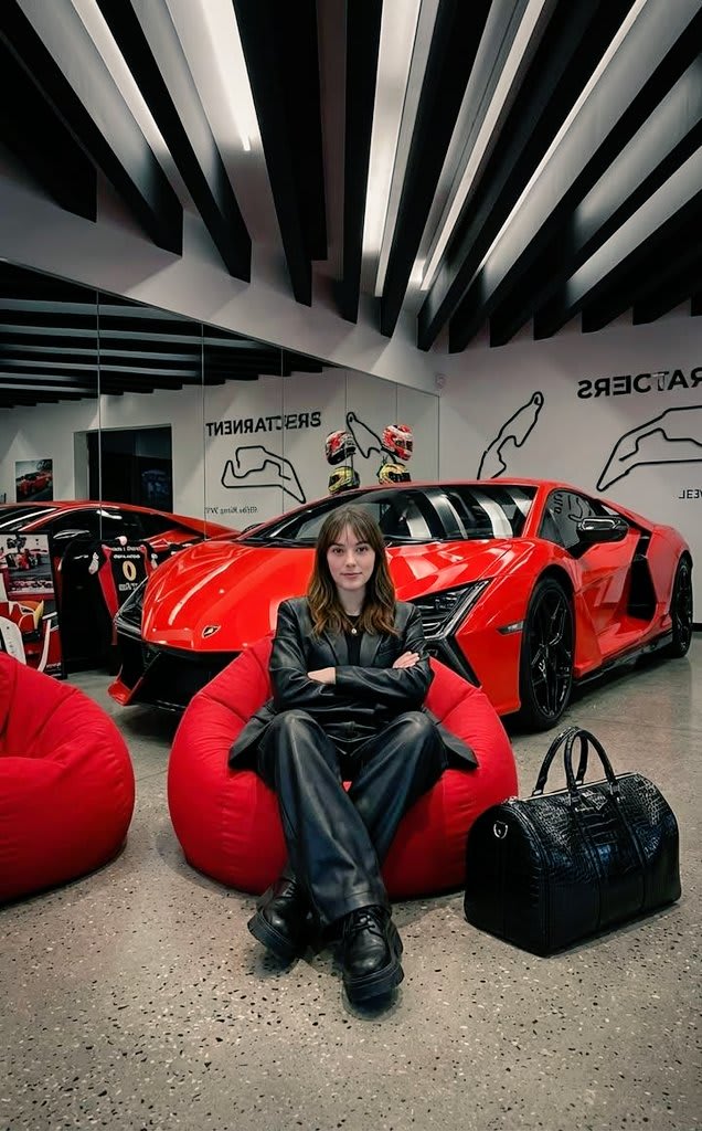 "{"prompt":{"reference_photo":"Use the uploaded reference photo. Do not change the Subject’s facial features. The Subject must look 1000% identical to the uploaded images.","scene":{"setting":"sleek, dimly lit luxury showroom","subject_position":"seated slightly off-center on a bright red beanbag chair","midground":"vivid red supercar with angular front bumper, sharp air intakes, and glossy black detailing","background":{"ceiling":"bold, linear black slats running diagonally, creating depth with soft reflections","right_side":"glossy black croc-embossed duffel bag on speckled concrete floor with diffused light reflections","left_side":"another red beanbag and subtle racing-themed decor providing controlled pops of color","mirrored_wall":"reversed silhouettes of showroom signage, racing helmet displays, and stylized circuit-track outlines"}},"subject":{"identity":"must match reference photo with 1000% accuracy","outfit":{"jacket":"matte black leather jacket with structured seams and folded cuffs","trousers":"oversized black leather trousers pooling at the ankles","shoes":"chunky black platform shoes with high-shine surfaces","posture":"arms crossed in a relaxed, confident pose with subtle reflections emphasizing leather textures"}},"supercar_details":{"lighting_effects":"sculpted hood shifting from deep shadows to bright reflections","rims":"black rims under aerodynamic fenders","windshield":"polished surface capturing faint interior reflections"},"micro_details":["dust speckles on concrete","tiny reflections across leather surfaces","faint fingerprints on duffel bag’s glossy texture","dramatic shadow falloff around shoes"],"camera_style":"natural, authentic, HD look as if photographed with an iPhone camera","constraints":{"face_modification":"none allowed — maintain all facial features exactly as in reference image"}}}"